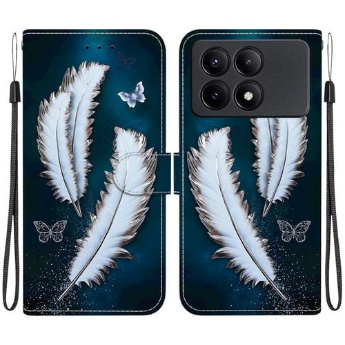 Funda de Cuero con Dibujo de Colores y Textura de Cristal para Redmi K70E/Poco X6 Pro (Plumas de Mariposa Blancas)