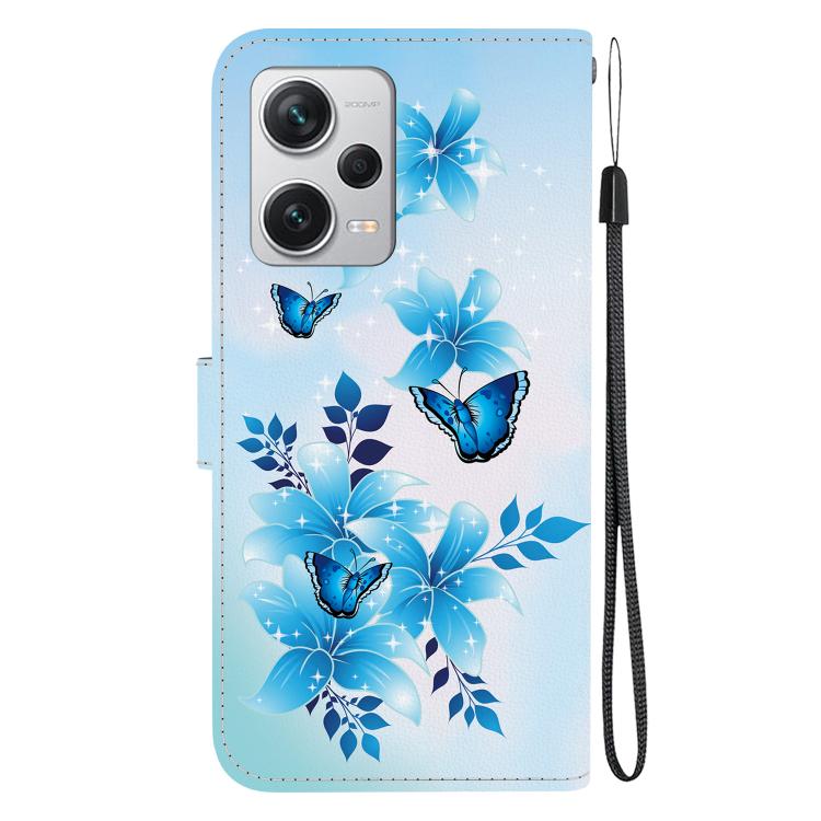 Funda de Cuero con Dibujo de Colores y Textura de Cristal para Redmi Note 12 Pro+ 5G (Mariposas Azules)