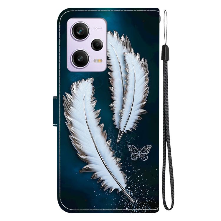 Funda de Cuero con Dibujo de Colores y Textura de Cristal para Redmi Note 12 Pro/Poco X5 Pro (Plumas de Mariposa Blancas)
