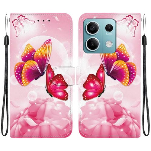 Funda de Cuero con Dibujo de Colores y Textura de Cristal para Redmi Note 13 5G (Mariposas Rosas)