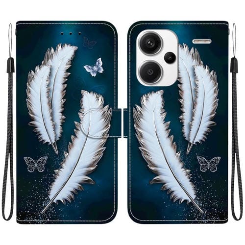 Funda de Cuero con Dibujo de Colores y Textura de Cristal para Redmi Note 13 Pro+ 5G (Plumas de Mariposa Blancas)