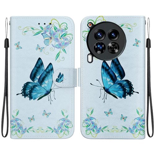 Funda de Cuero para Tecno Camon 30 Premier 5G con Dibujo de Colores y Textura de Cristal (Pensamientos Azules)