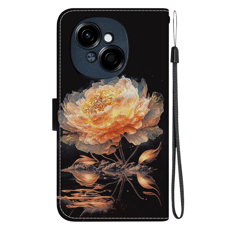 Funda de Cuero para Tecno Spark Go 1 y Pop 9 Pro con Dibujo de Colores y Textura de Cristal (Peonía Dorada)