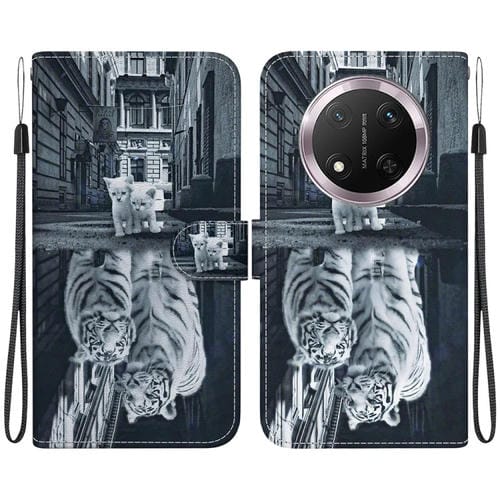 Funda de Cuero Honor X9C con Dibujo de Colores y Textura de Cristal (Reflejo de Tigre y Gato)