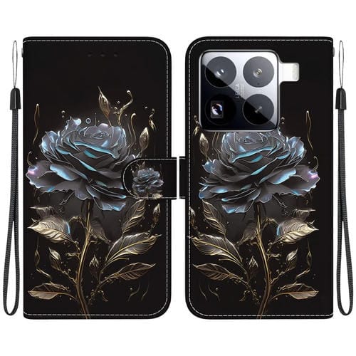 Funda De Cuero Con Dibujo De Colores Y Textura De Cristal Para Xiaomi 15 Pro (Rosa Negra)