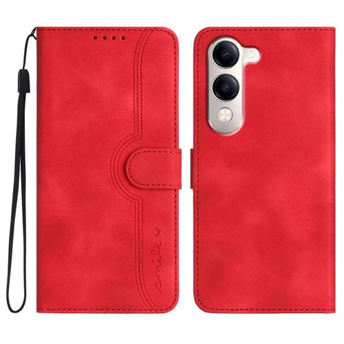Funda de Cuero con Diseño de Corazón Global para Vivo Y29S 5G / Y04 4G (Roja)