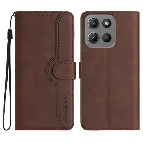 Funda de Cuero para Motorola Moto G15 con Diseño de Corazón (Marrón)