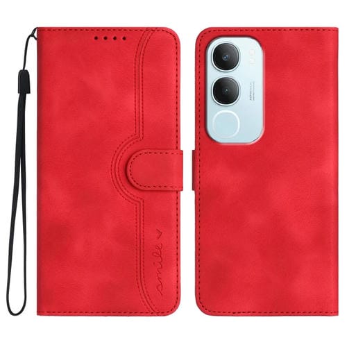 Funda de Cuero con Diseño de Corazón para Vivo Y19S (Rojo)