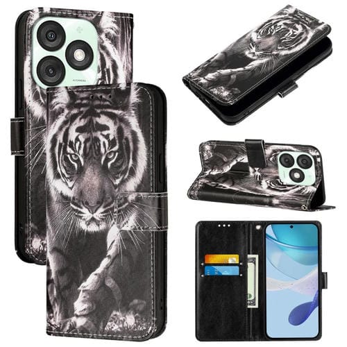 Funda de Cuero para Teléfono Itel A50 con Diseño Tigre (Blanco y Negro)