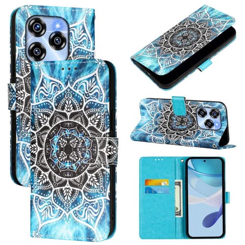 Funda de Cuero para Teléfono Oukitel C50 con Diseño Mandala Submarino (Liso)