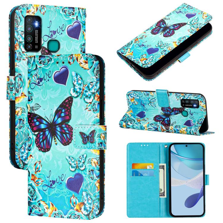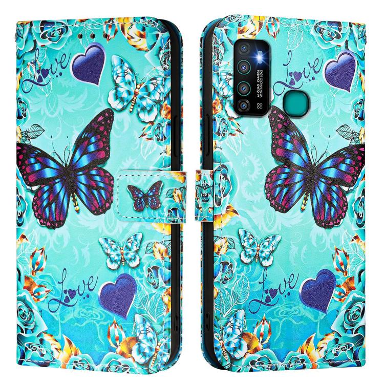 Funda de Cuero para Infinix Hot 9 y Hot 9 Pro con Diseño Mariposa de Amor y Tejido Liso
