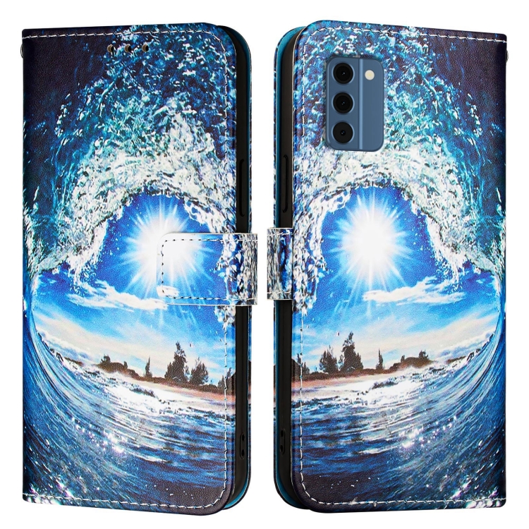 Funda de Cuero para Nokia C300 con Diseño Ondas y Sol (Color Liso)