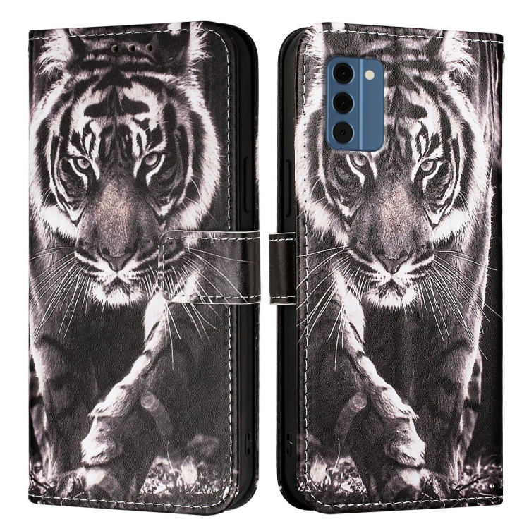 Funda de Cuero con Diseño Tigre para Nokia C300 (Blanco y Negro)