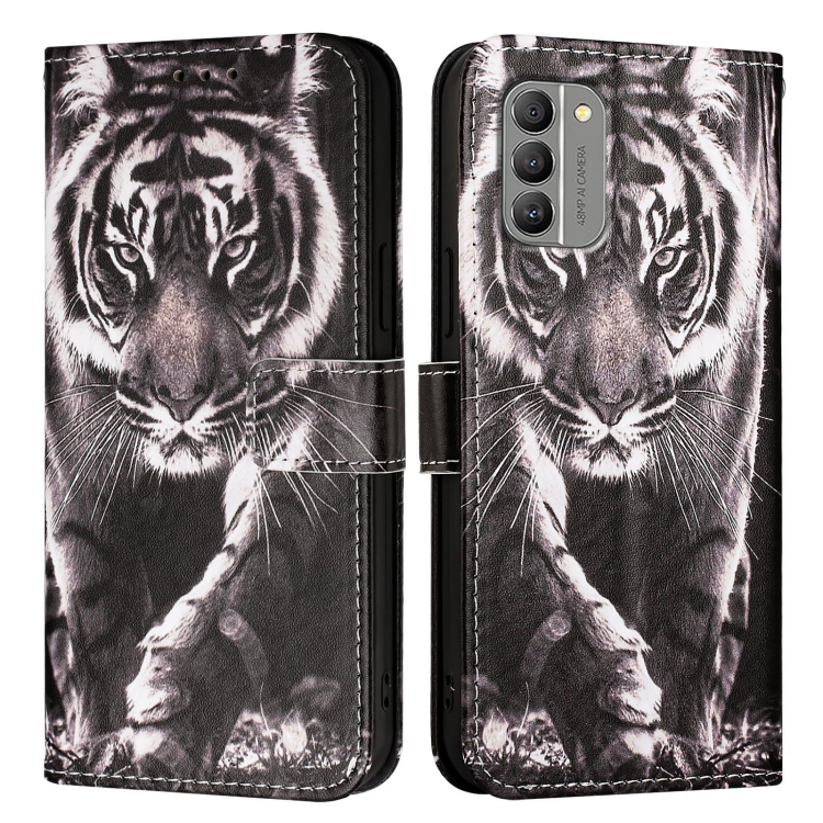 Funda de Cuero con Diseño Tigre para Nokia G400 (Blanco y Negro)