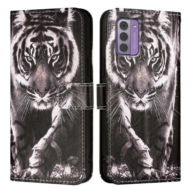 Funda de Cuero para Nokia G42/G310 con Diseño Tigre Blanco y Negro (Liso)