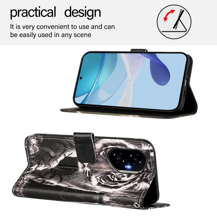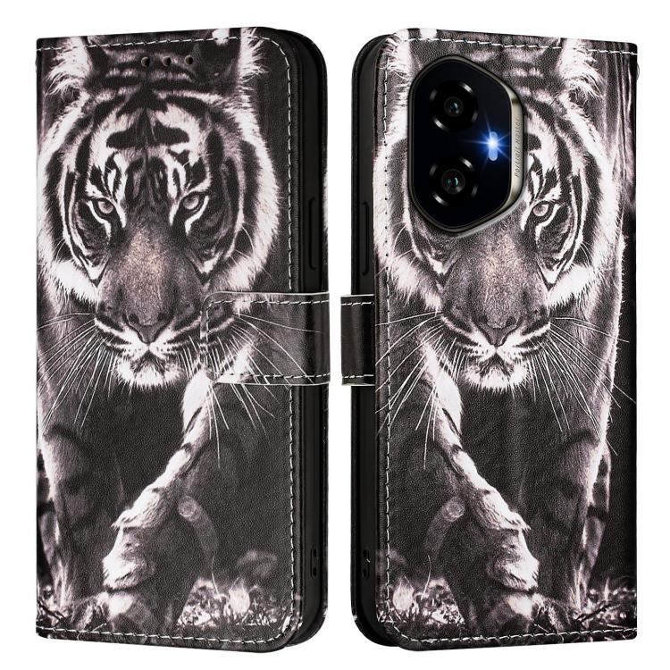 Funda de Cuero para Teléfono Honor 300 (Tigre Blanco y Negro) Diseño Liso
