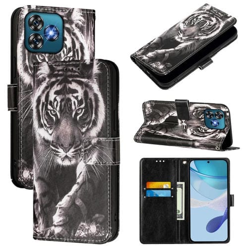 Funda de Cuero para Teléfono Oukitel C53 con Diseño Tigre (Blanco y Negro)