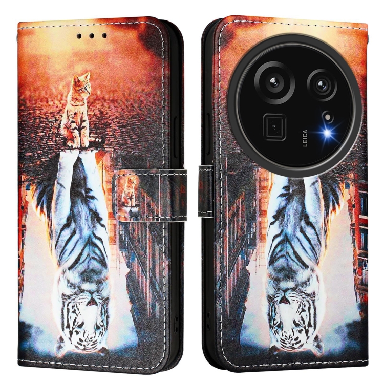Funda de Cuero para Sharp Aquos R9 Pro Sh-54E con Diseño de Gatos y Tigres (Liso)