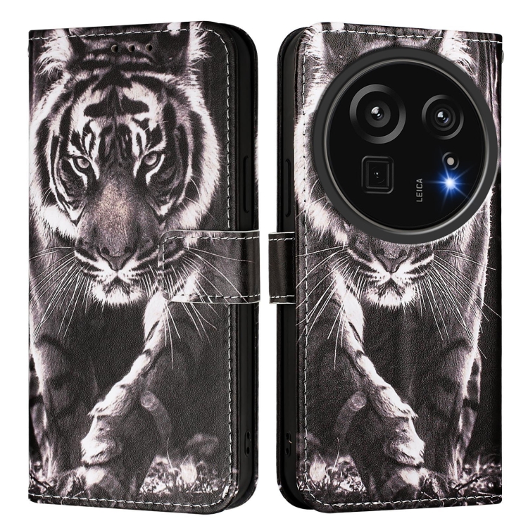 Funda de Cuero para Sharp Aquos R9 Pro Sh-54E con Diseño Tigre Blanco y Negro