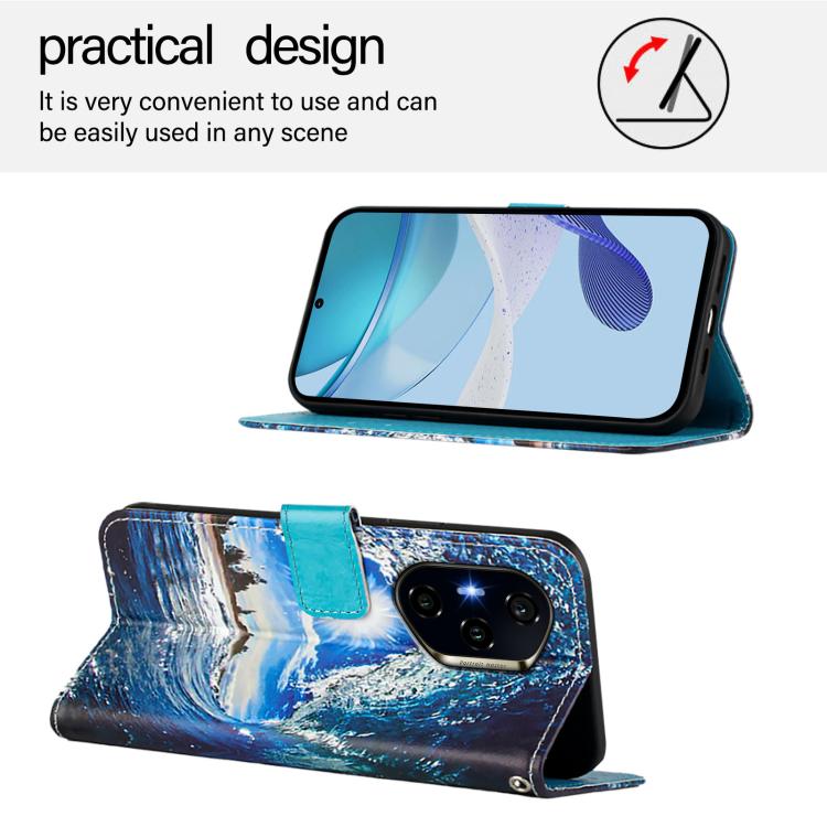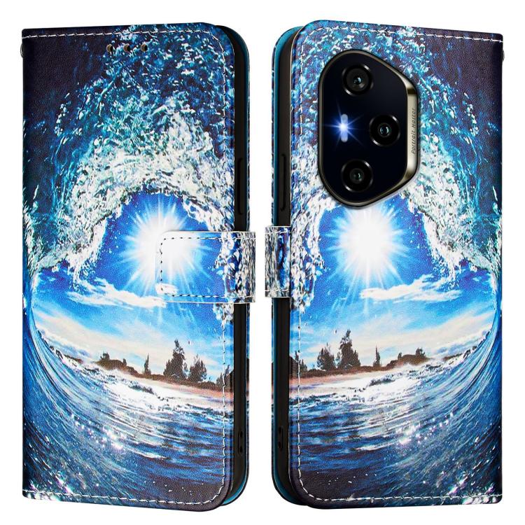 Funda de Cuero para Honor 300 Pro y 300 Ultra con Diseño Ondas y Sol (Colores Lisos)