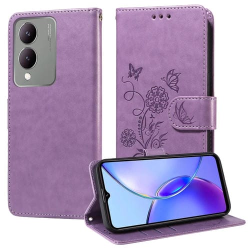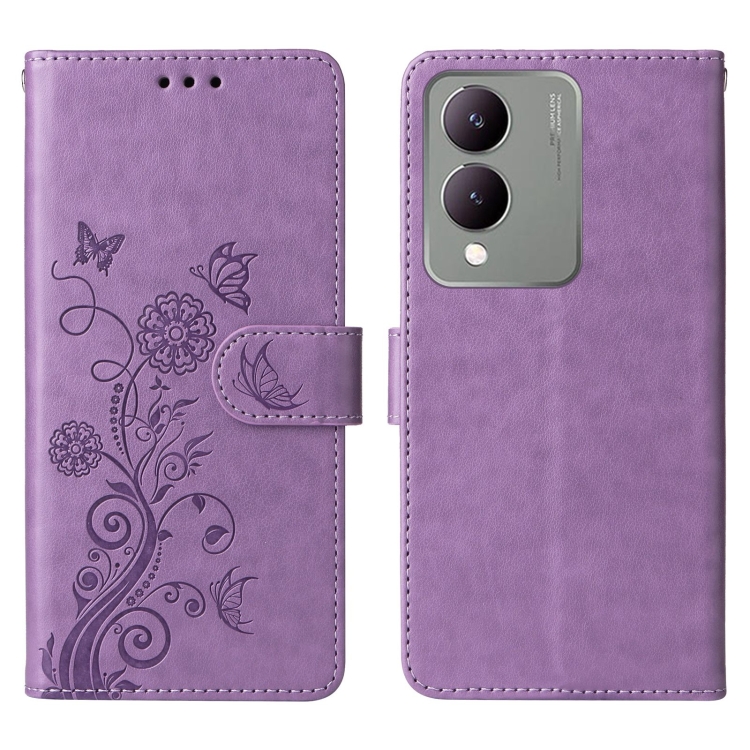 Funda de Cuero con Diseño de Mariposas y Flores En Relieve para Vivo Y17S / Y36I 5G / Y28 5G (Morado)