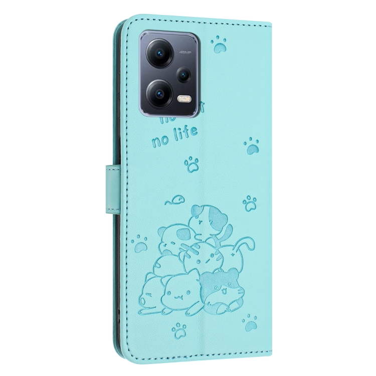 Funda de Cuero con Estampado de Gatito En Relieve Global para Redmi Note 12 Pro+ con Cordón (Verde Menta)