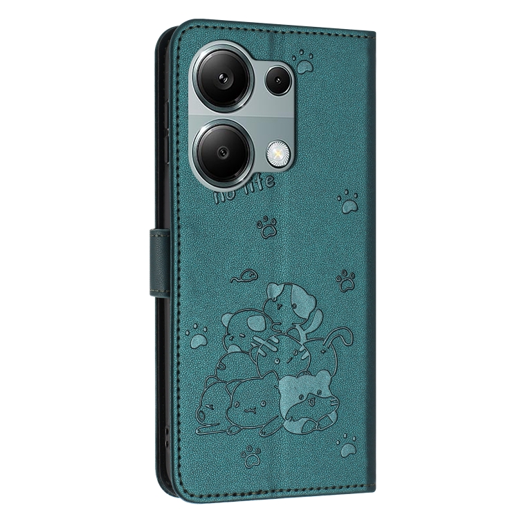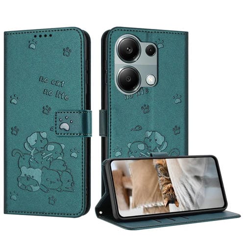 Funda de Cuero con Estampado de Gatito y Cordón para Redmi Note 13 Pro 4G (Verde Oscuro)