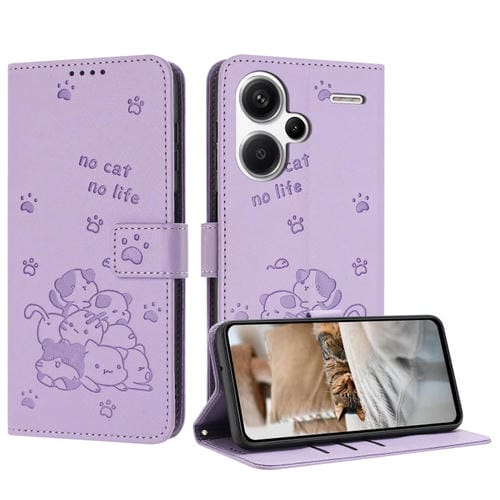 Funda de Cuero con Estampado de Gatito y Cordón para Redmi Note 13 Pro+ 5G (Morado)