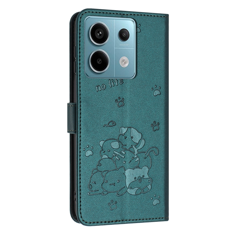 Funda de Cuero con Estampado de Gatito y Cordón para Redmi Note 13 Pro 5G (Verde Oscuro)