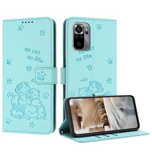 Funda de Piel con Estampado de Gatito y Cordón para Xiaomi Poco M5S 4G (Verde Menta)