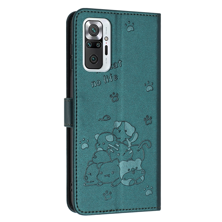 Funda de Piel con Diseño de Gatito En Relieve para Redmi Note 10 Pro con Cordón (Verde Oscuro)