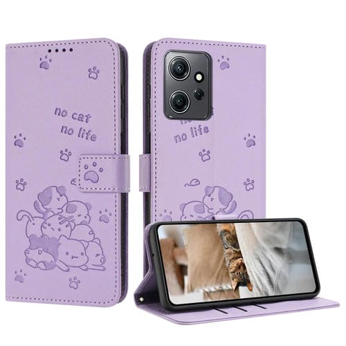 Funda de Cuero con Diseño de Gatito En Relieve para Redmi Note 12 4G (Morado)