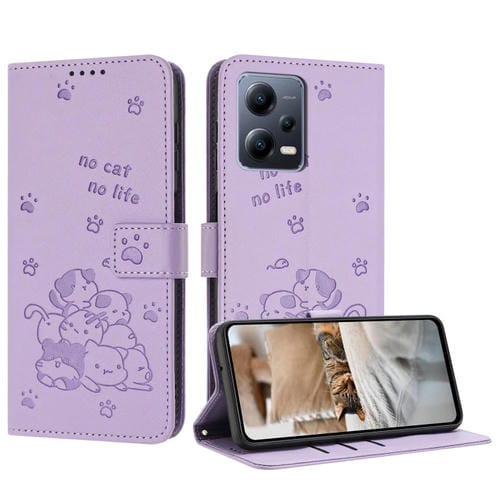 Funda de Cuero con Estampado de Gatito y Cordón para Redmi Note 12 5G (Morado)
