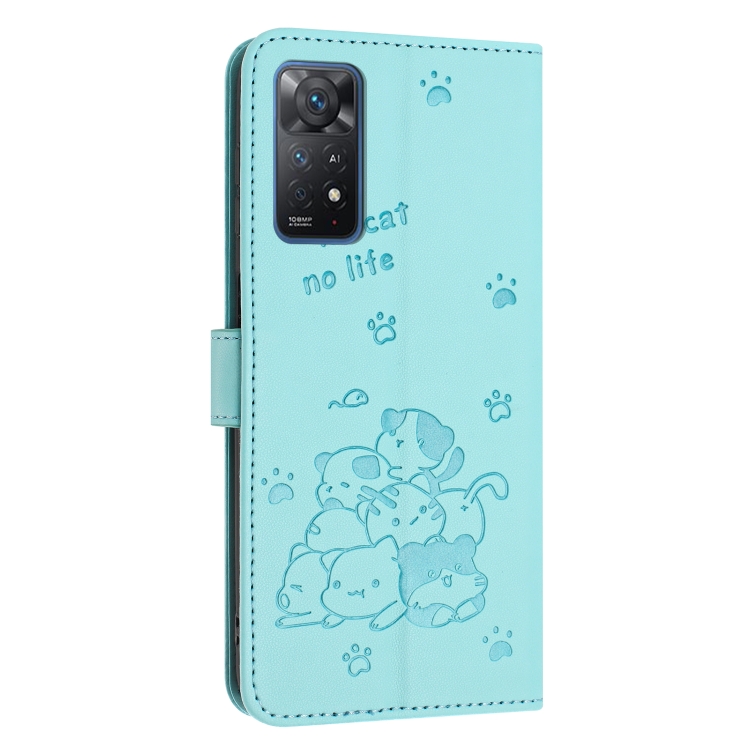 Funda de Piel con Diseño de Gatito En Relieve para Redmi Note 12 Pro 4G con Cordón (Verde Menta)