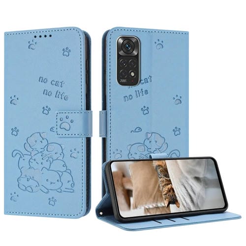 Funda de Cuero con Estampado de Gatito En Relieve para Redmi Note 12S 4G (Azul)