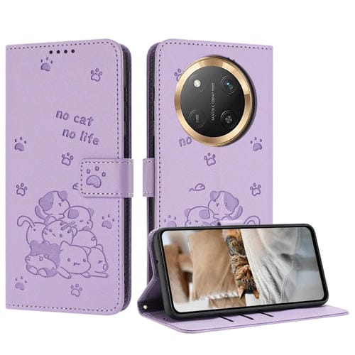 Funda de Piel para Honor X9C con Diseño de Gatito en Relieve y Cordón (Morado)