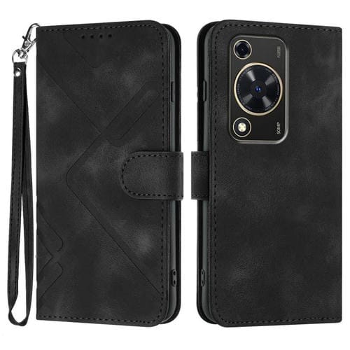 Funda de Cuero para Huawei Nova Y72 con Diseño de Líneas y Tacto de Piel (Negra)