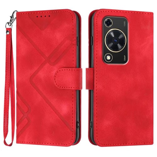 Funda de Cuero para Huawei Nova Y72 con Diseño de Líneas y Tacto de Piel (Rojo)