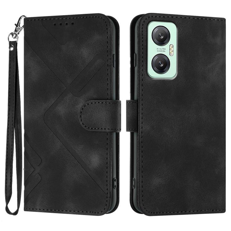 Funda de Cuero para Infinix Hot 20 5G con Diseño de Líneas y Tacto Suave (Negro)
