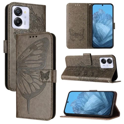 Funda de Cuero BlackView Color 8 con Diseño de Mariposa en Relieve (Gris)