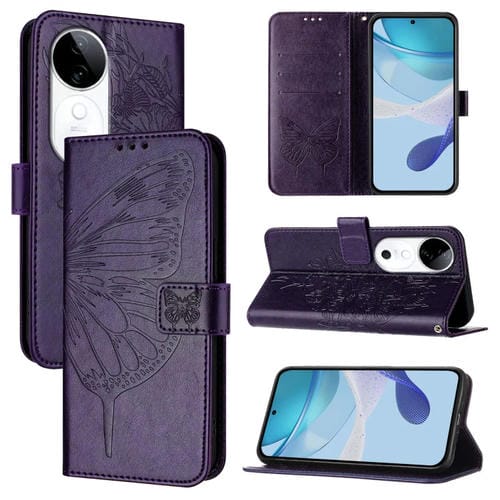 Funda de Cuero con Diseño de Mariposa En Relieve para El Teléfono Vivo S19 (Morado Oscuro)