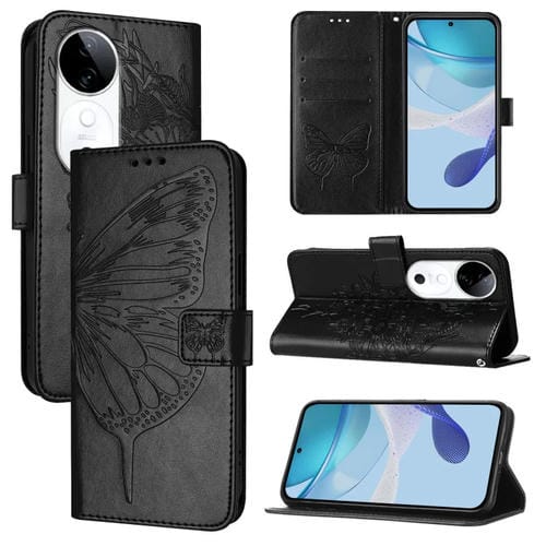 Funda de Cuero con Diseño de Mariposa En Relieve para El Teléfono Vivo S19 (Negro)