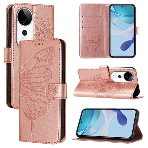 Funda de Cuero con Diseño de Mariposa En Relieve para El Teléfono Vivo S19 Pro (Oro Rosa)