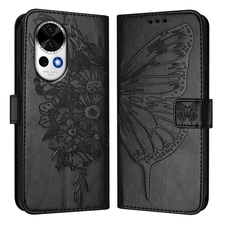 Funda de Cuero con Mariposa en Relieve para Huawei Nova 13 y Nova 12 (Negra)