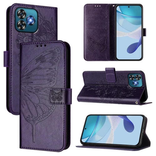 Funda de Cuero con Mariposa en Relieve para Oukitel C53 (Morado Oscuro)