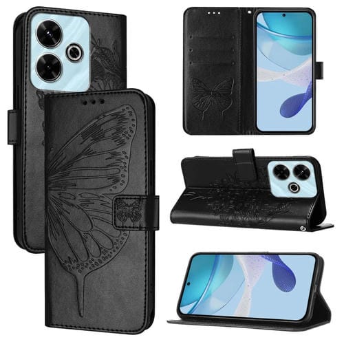 Funda de Cuero con Diseño de Mariposa En Relieve para Redmi 13 4G (Negra)