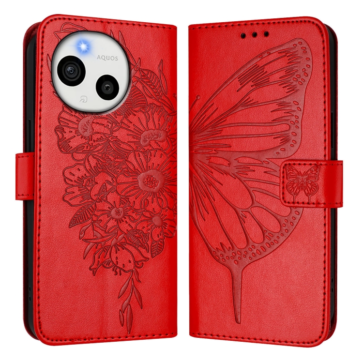 Funda de Cuero para Sharp Aquos Sense9 Plus con Diseño de Mariposa en Relieve (Roja)