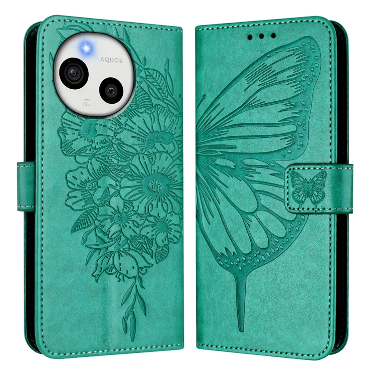 Funda de Cuero para Sharp Aquos Sense9 Plus con Diseño de Mariposa en Relieve (Verde)