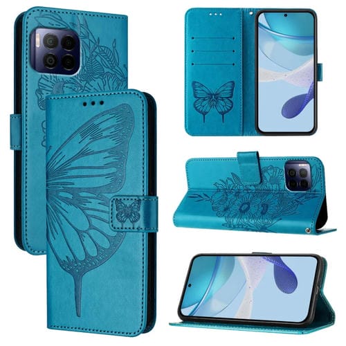 Funda de Cuero para T-Mobile Revvl 7 Pro 5G con Diseño de Mariposa En Relieve (Azul)
