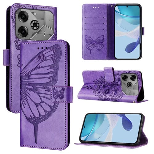 Funda de Cuero para Tecno Pova 6 Neo con Diseño de Mariposa En Relieve (Morado Claro)